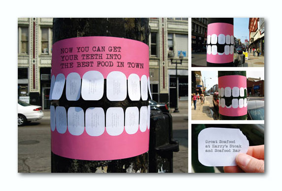 | Each tear off tooth contained an incentive offer and the contact details. It received thousands of extra dollars of FREE publicity when both T.V. and Newspapers ran it in their news programs. (I can’t imagine who tipped them off) For a total cost of well below $50.00 for 10 locations, the return on investment would make even a Donald Trump blush, well almost…You are stark raving mad NOT to try this… It could be done dozens of different ways to suit your image. Please remember to tell us all about your results on the comment form below. Email This Article to a Friend Print This Post |